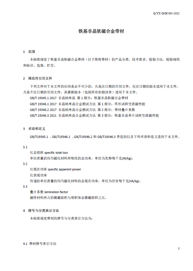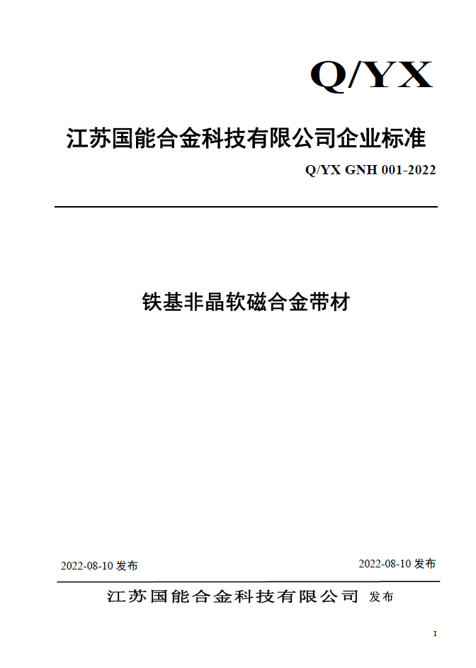 江苏国能合金科技有限公司非晶薄带企业标准公布