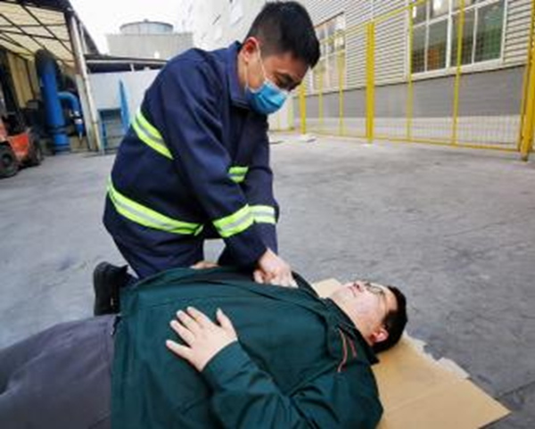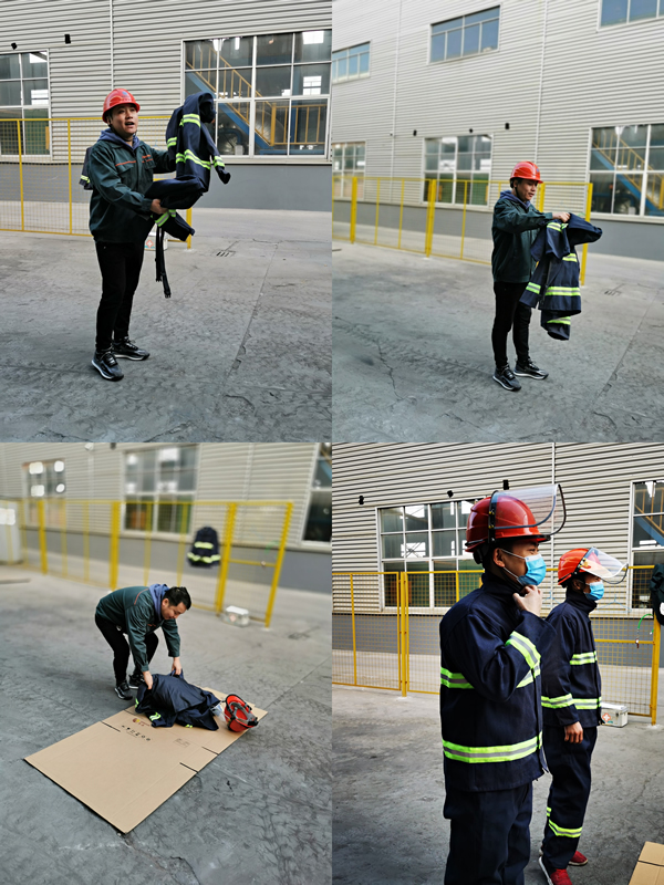组织演练前,生产总监进行演练过程讲解及应急装备的佩戴与使用。