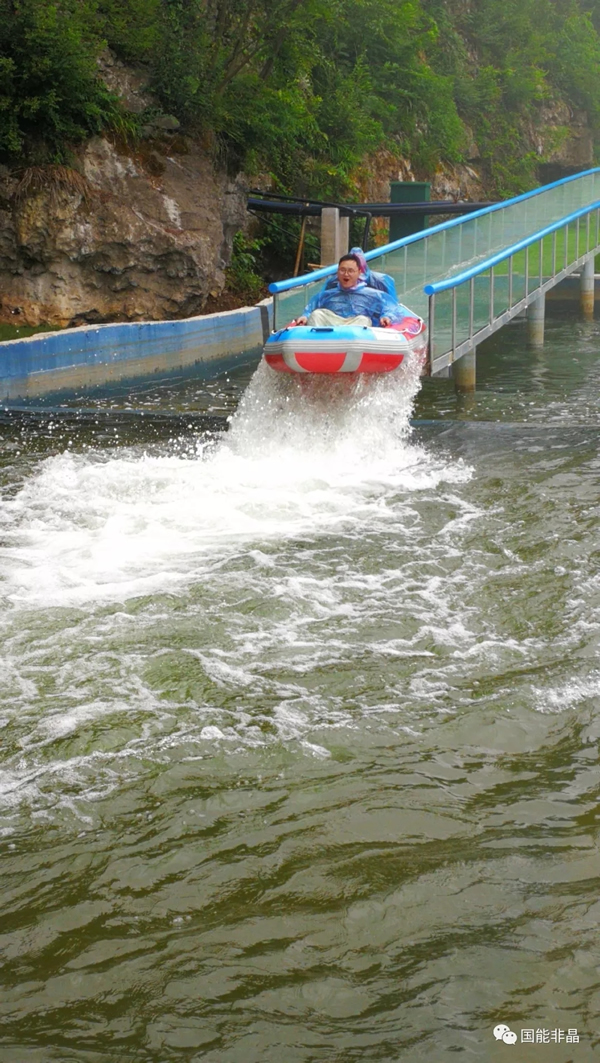 Shilongshan drift is a glass-bottle-style drift, with a total length of more than 800 meters and a drop of 68 meters, and the whole process is S-shaped distribution. In the order of the queue in pairs, one by one to sit on the rubber boat, experience a feeling of fast and furious. I am the second group, after the ship only listen to the safety officer a sound, like a cannonball boring rushed to the glass river, in the rapid descent process and S-shaped turn, so that my heart is about to jump into the throat, about a minute later suddenly a suspended landing, fell into the pool, splashing water like pouring rain on the body, wow!! I was soaking wet... .