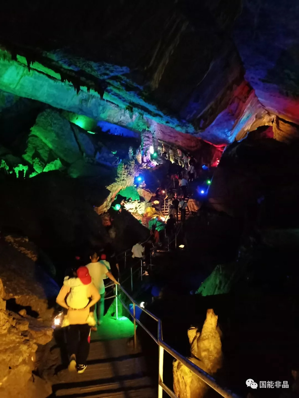 When I enter the cave, I feel the temperature drop suddenly, which is like the cool of late autumn in this summer. The karst cave has two paths, water cave and dry cave, and the hole is connected, and there is a hole in the hole. We first went through the drought cave, all the way through a variety of scenes, stalotites, magic works, waterfalls, springs, Yaochi jade steps, with lights, beautiful, beautiful, let people dizzying.